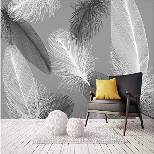 Carta da parati fotografica Camera da letto grigio Piume bianche fotografica 3D Carta da parati fotomurali poster murale Soggiorno camera letto minimalista tv sfondo-300cm×210cm