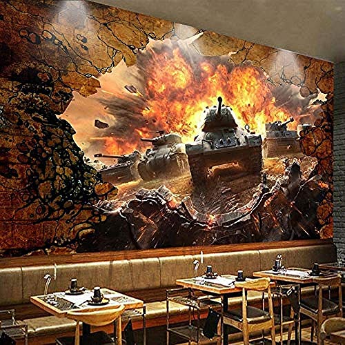 Carta da parati fotografica personalizzata Carta da parati 3D Carro armato Muro rotto Personalità Po Carta da parati fotomurali poster murale Soggiorno camera letto minimalista tv sfondo-150cm×105cm