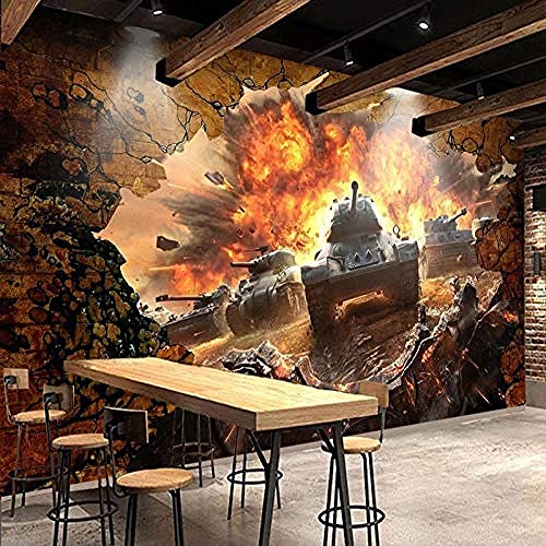 Carta da parati fotografica personalizzata Carta da parati 3D Carro armato Muro rotto Personalità Po Carta da parati fotomurali poster murale Soggiorno camera letto minimalista tv sfondo-200cm×140cm