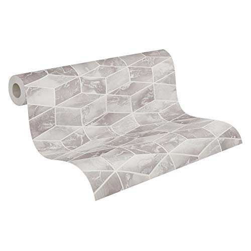Carta Da Parati Geometrica Alena - St. Petersburg Metropolitan Stories 2 A.S. Création Carta da parati tessuto non tessuto 10.05 m x 0.53 m Grigio Metallico Bianco Prodotto in Germania 378631 37863-1