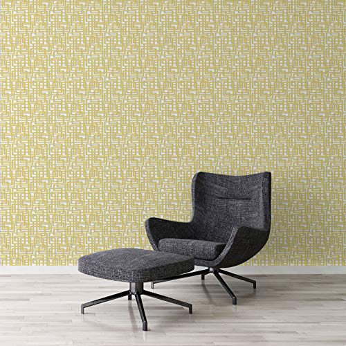 Carta da Parati geometrica gille su fondo bianco in TNT | Carta da parati con linee geometriche | Carta da parati tessuto non tessuto con linee gialle