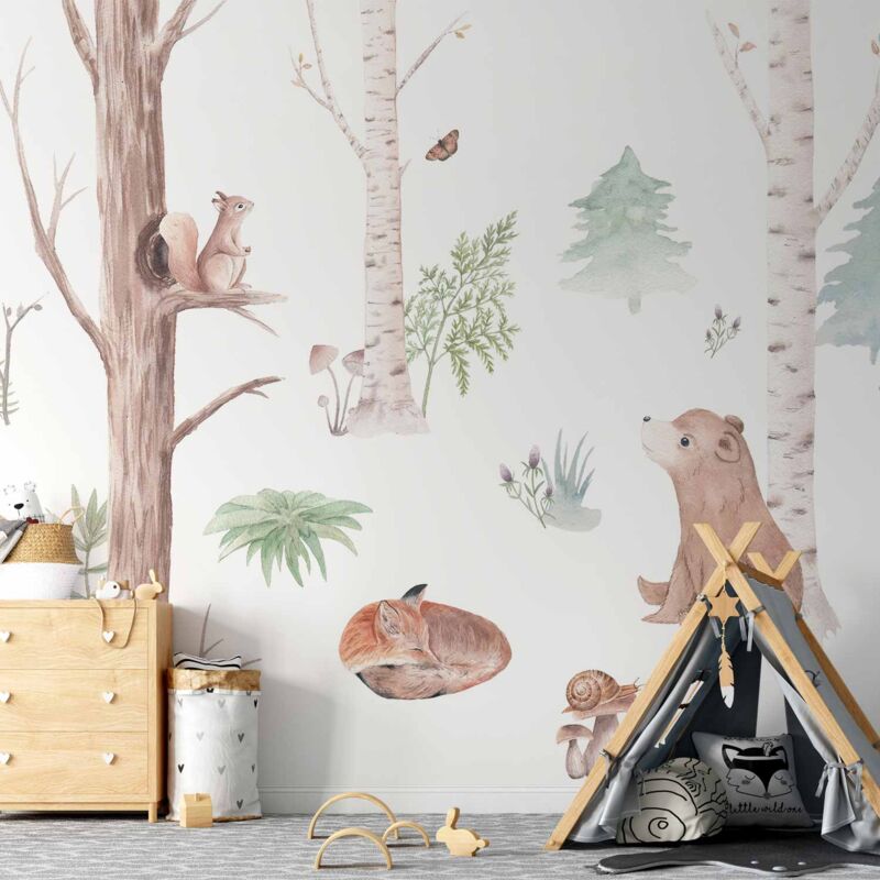 Carta da parati fotografica: un elemento decorativo perfetto Le carte da parati fotografiche stanno diventando sempre più popolari e rimarranno sicuramente a lungo parte delle attuali tendenze dell'interior design. Ciò è dovuto, tra gli altri, per il fatto che danno effetti spettacolari e la loro installazione non è un grosso problema. La carta da parati fotografica "Carta da parati fotografica - Illustrazione discreta con animali del bosco" ti permette di cambiare completamente l'arredamento attuale senza la necessità di effettuare grandi lavori di ristrutturazione. Basta scegliere il modello giusto per creare un interno suggestivo ed elegante. I nostri sfondi fotografici su misura sono la scelta giusta per chiunque sogni una trasformazione della casa. Con il loro aiuto potrete rinfrescare senza troppi sforzi qualsiasi stanza, come ad esempio una camera da letto, un soggiorno, una cameretta o una sala da pranzo. I murali sono estremamente facili da installare. Rispetto alla pittura