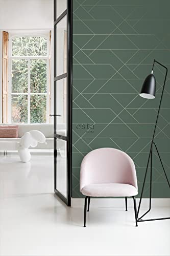 Carta da parati linee grafiche verde scuro e oro - 139212 - di ESTAhome