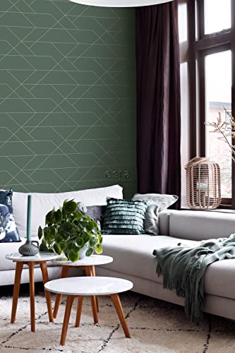 Wow! Questa carta da parati alla moda con linee grafiche in verde scuro e oro è perfetta per creare un bellissimo muro di accento e aggiunge un'atmosfera calda e vivace alla stanza.