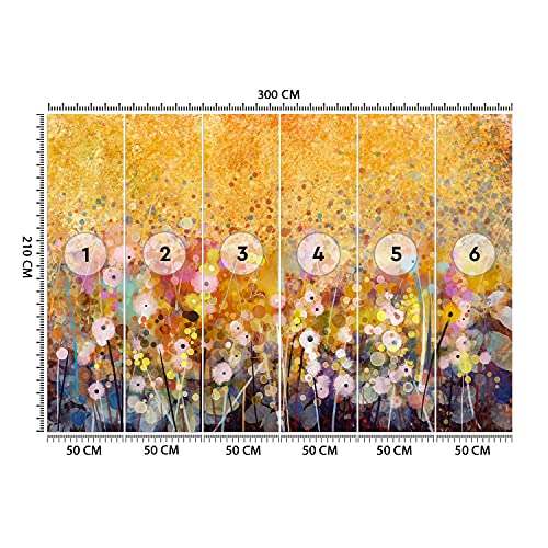 Carta da parati di lusso Piante Natura Fiori 300x210 cm XXL Decorazione Fotomurali Soggiorno Camera da letto Moderne Design Ufficio Corridoio Hotel Spa Design Prato Fiorito Astratto arancione