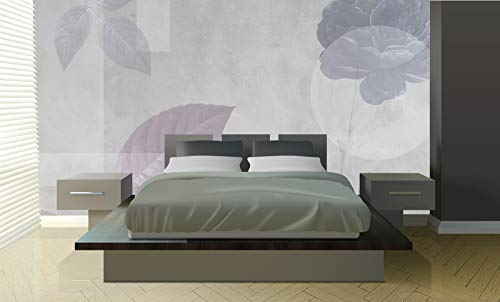 Carta da parati moderna, floreale geometrica, grigio, blu, viola, stile bauhaus, fiori, foglie, arredamento contemporaneo elegante, varie misure cm, camera da letto, salone (450 x 300 cm)