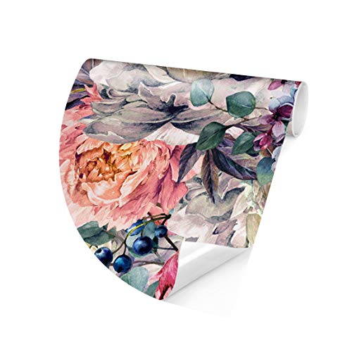 Carta da parati rotonda autoadesiva - Acquerello floreale Bouquet 100 × 100 cm