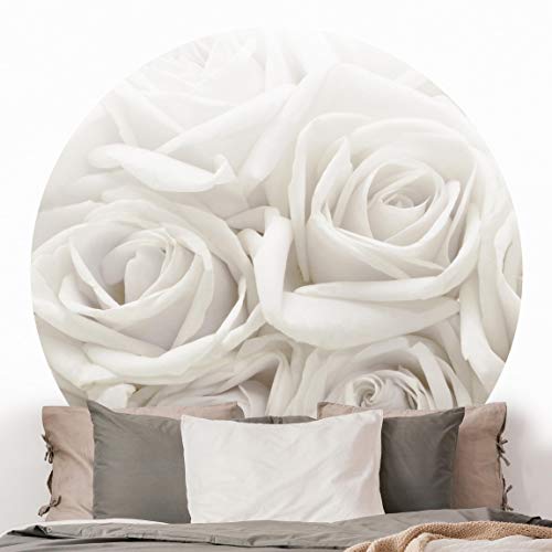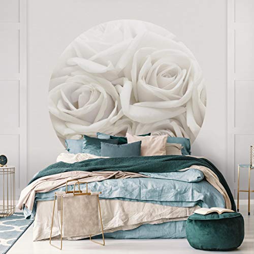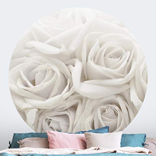 Carta da parati rotonda autoadesiva - Rose bianche 50 × 50 cm