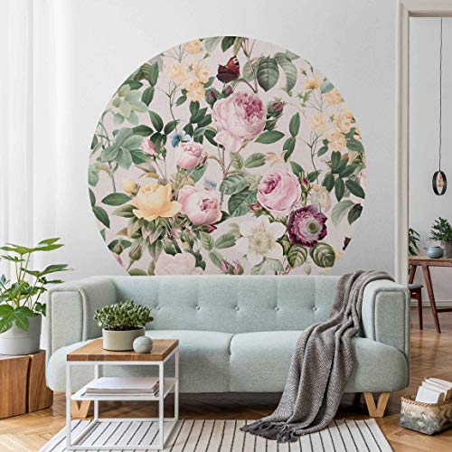 Carta da parati rotonda autoadesiva - Vintage Fiori Illustrazione XXL 200x200cm
