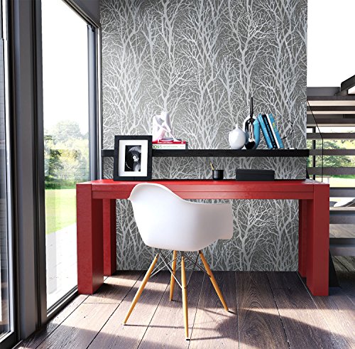 Carta da parati in tessuto non tessuto con albero modello Antracite Grigio Metallizzato in versione Raffinatissima | eccezionale sfondo modello moderno in casa di campagna Natura Effetto per gli