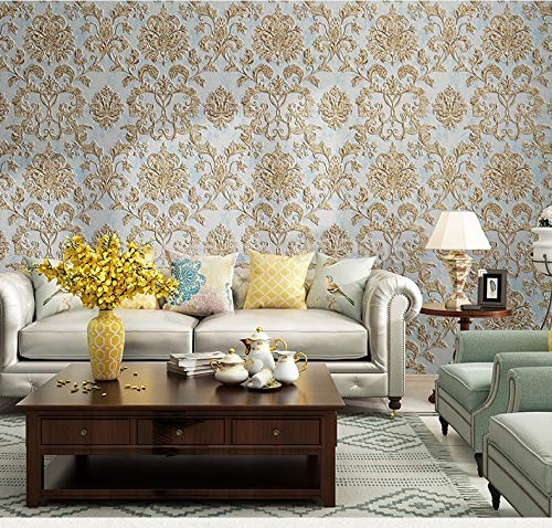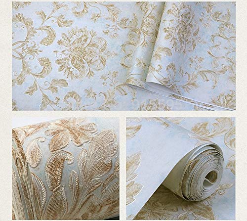 Carta da parati 3D non tessuto carta da parati in tessuto goffrato lusso Sfondo Damasco Wall Paper Rolls Nero Grigio Beige Marrone Living Room Decor TV (Color: WP1019 E, Dimensions: 0.53M*10M)