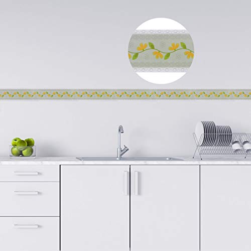 Carta da parete 3D autoadesiva, bordo in PVC, per cucina, bagno, camera da letto, decorazione da parete, 9,8 cm x 80,8 m (verde fiore giallo)