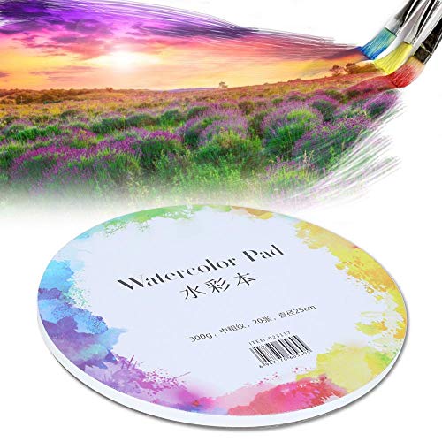 Carta per Pittura, Carta per acquerelli in Puro Cotone pressata a Freddo Senza acidi per la Produzione di Arte Portatile(Circolare 25 cm 20 Fogli)