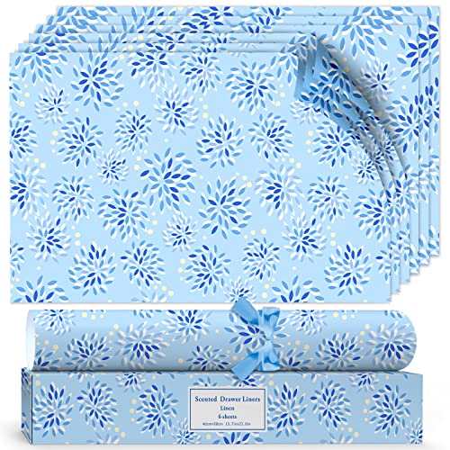 Carta Profumata di Lino Fresco per Cassetti Fodere per Armadi per Profumare i Vestiti e Decorare i Mobili, 6 Fogli 36.5 x 50 cm