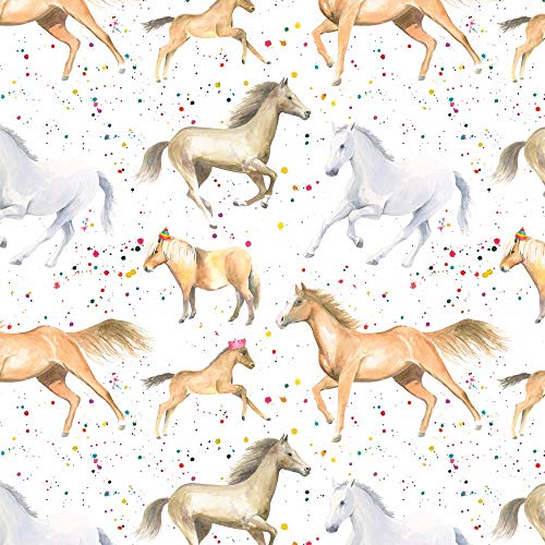 2 fogli di carta da regalo con illustrazioni acquerellabili di cavalli, perfetti per compleanni, Natale e qualsiasi altra celebrazione.