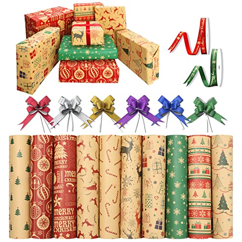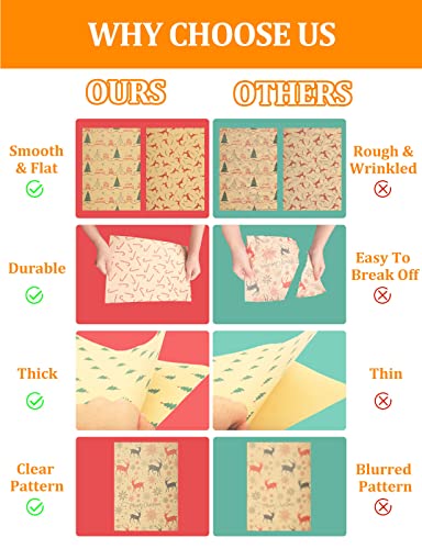 【Qualità Affidabile】: La Carta da regalo natale realizzata in carta kraft di alta qualità, che è durevole, bella, non tossica, resistente allo strappo, carta pieghevole e può essere tagliata.