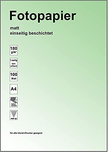 Carta A4 per stampante a getto d'inchiostro, 180 g, 100 fogli, 1 lato rivestito (6052)