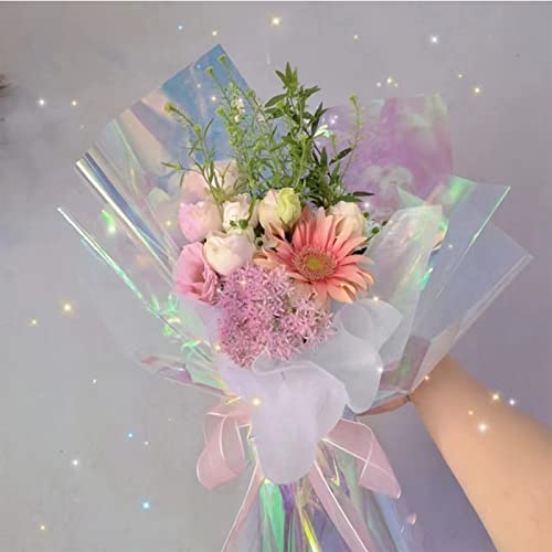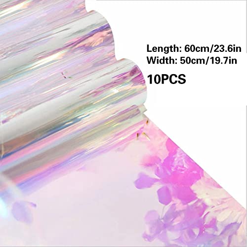 Carta Trasparente per Confezioni, Rotolo di Cellophane Trasparente, Cellophane Arcobaleno, Carta da Regalo Natalizia Set, Carta in Cellophane, 10 Pezzi (50X60cm)