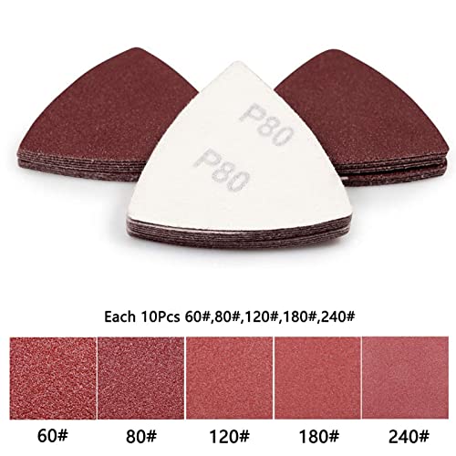 Set di carta abrasiva: questo set è composto da 1 tampone abrasivo triangolare da 80 mm con design del foro e 50 pezzi di carta vetrata da 80 mm per l'utilizzo