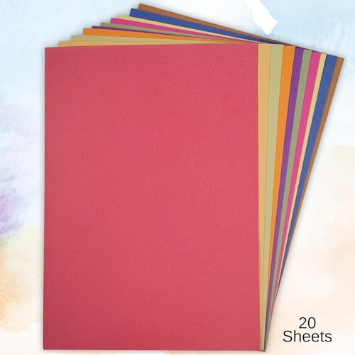 Carta da zucchero riciclata formato A2, colori vivaci, 20 fogli grandi in 10 colori assortiti, ideali per progetti artistici e artigianali, disegno, pittura e album di ritagli. Dimensioni foglio 60 x