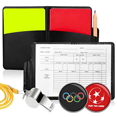 Set di Carte Arbitro, con Moneta dell'arbitro Fischietto Taccuino Portafoglio Carte Arbitro di Calcio,Cartellino Rosso Cartellino Giallo Attrezzature da Arbitro Sportivo per Allenamento di Calcio