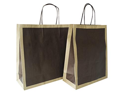 Carte Dozio - Shopper in carta riciclata avana con riquadro color Marrone, maniglia ritorta, f.to 22+10x27+5, cf 25 pz