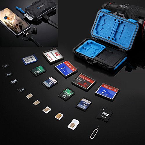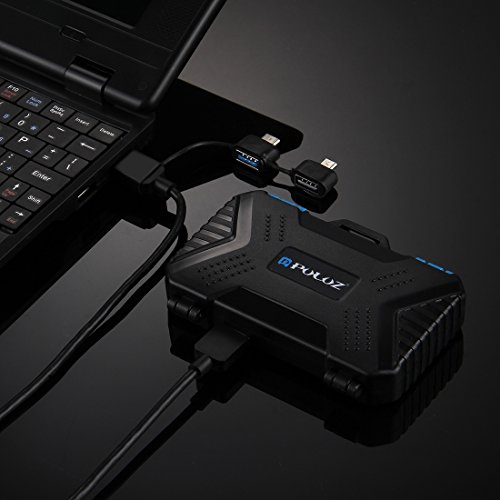 Carte di memoria Lettore e Custodia, PULUZ 21 fessura impermeabile SD CF CF TF SIM Custodia schede SIM & Lettore di schede integrato con cavo USB 3 in 1 USB USB 3.0 + micro USB 2.0 + Type-C a micro USB 3.0) per tablet, computer, notebook e smartphone Android, Capacità: 1* SIM standard + 2*Micro-SIM + 2*Nano-SIM + 3*CF + 7*SD + 6*TF+ 1* Pin Scheda