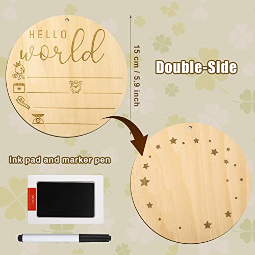 Carte Milestone Neonato, 15cm Doppio Lato Legno Rotondo Cartello per Neonato Hello World con Tampone di Inchiostro per Impronte di Mani e Piedi del Bambino per Ospedale e Annunci di Neonati
