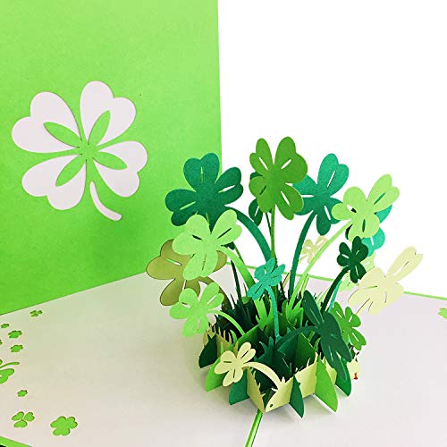 Carte pop-up 3D Carte Anniversario Carte Congratulazioni e Invito per la Festa di Matrimonio di Anniversario Forma di trifoglio a forma di quadrifoglio, portafortuna, con busta, verde