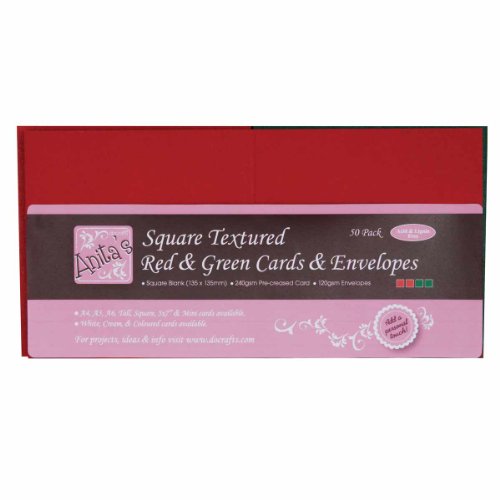 Carte di Texture di Anita e Buste, rettangolari, 50 Pezzi, Rosso/Verde