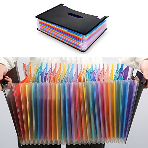 Cartella file espandibile SAIYU Cartella file A4 flessibile 24 tasche Porta documenti Porta documenti Archiviazione Cartella file fisarmonica (multicolore, rinforzo bordo, etichette a colori e note)