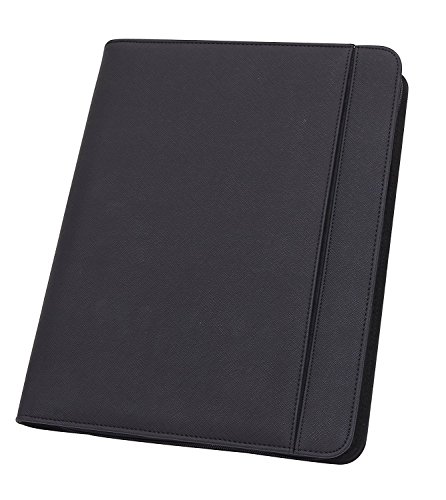 Cartella Portadocumenti A4,Cartellina Porta Documenti Portablocco A4 Zip Porta Tablet Organizer Porta Agenda in Pelle con Legante ad anello Portafoglio Padfolio Cartelle Porta Documenti (Nero)