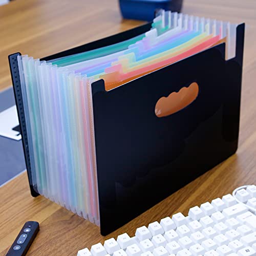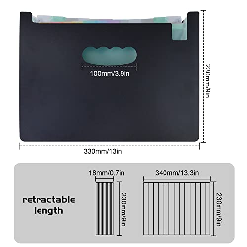 Cartella Portadocumenti A4, CHSEROK PP Fisarmonica Porta Documenti, Nera Cartella Portadocumenti Espandibile con Etichette Adesive, possono Essere Utilizzate per Archiviare File