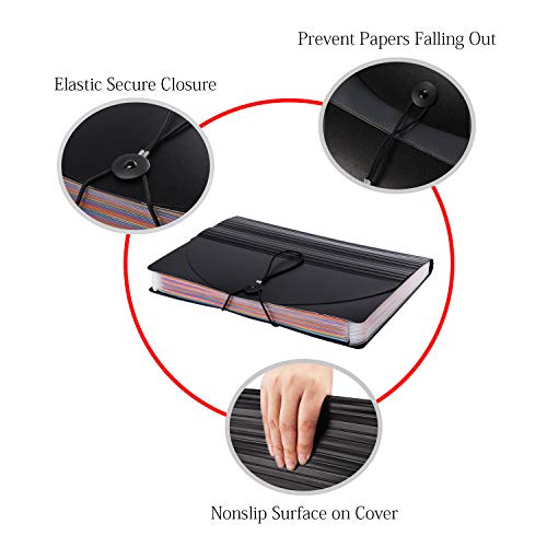 Con copertura antiscivolo e banda elastica: la nostra organizzatore documenti ha uno speciale coperchio espandibile antiscivolo per mantenere i file in buone condizioni, assicurandosi che i documenti siano al sicuro nella cartella dei file.