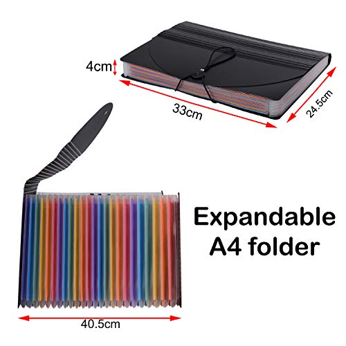 Cartella Portadocumenti Espandibile Fisarmonica Folder A4 Plastica Impermeabile con Coperchio e 24 Tasche Contiene 3000 Fogli per Ufficio Scuola Viaggio Famiglia