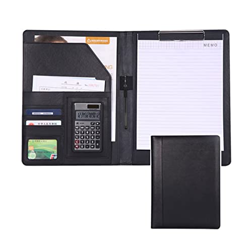 Cartella A4 Portadocumenti Finta Pelle Porta Block Notes per Ufficio Folio Cover Pieghevole File Curriculum Porta Carte Appunti E Blocco Note per Donna Uomo (Color: Black, Size: 12-Digit calculato