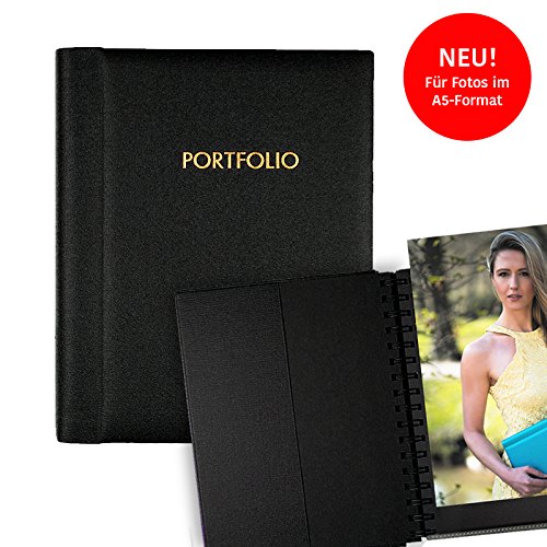 Cartella portadocumenti A5 nero, Scrittura goffratura oro Presentazione, Mappe, foto Mappe per 30 foto intercambiabili, maneggevole leichte Mappe formato A5, Portfolio Mappe, ARTISTA Mappe, Portalistino, Model Book, Model Mappe, visione Mappe, ideale per i viaggi