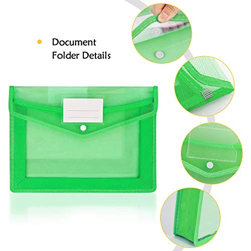 Cartelle Portadocumenti in Plastica, 5 Pcs A4 Portadocumenti Trasparente impermeabile Cartelle a Tasca Cartelline Plastica Busta con Bottone, Grande Capacità Buste per Scuola, Ufficio, Casa