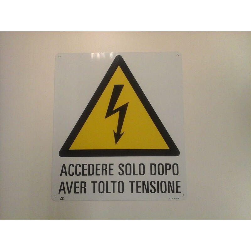 Cartello in alluminio Cartelli segnalatori testo 'accedere solo dopo aver tolto la tensione' - 41-0704-W Materiale alluminio Testo: Accedere solo dopo aver tolto la tensione Dimensioni: 25x22 cm