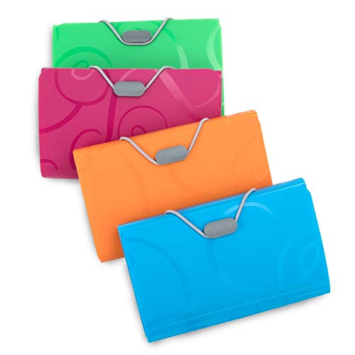 Fibbia a corda Design: sicuro per evitare la fuoriuscita di carte interne. La moda e la semplice striscia elegante, il colore assortito delle caramelle, l'effetto specchio opaco, rendono la tua vita da ufficio. Cosa ottieni: 4 pezzi cartelle a soffietto espandibili (rosso, giallo, blu, verde).