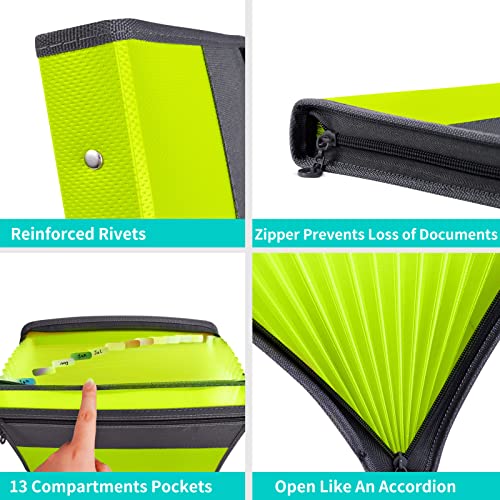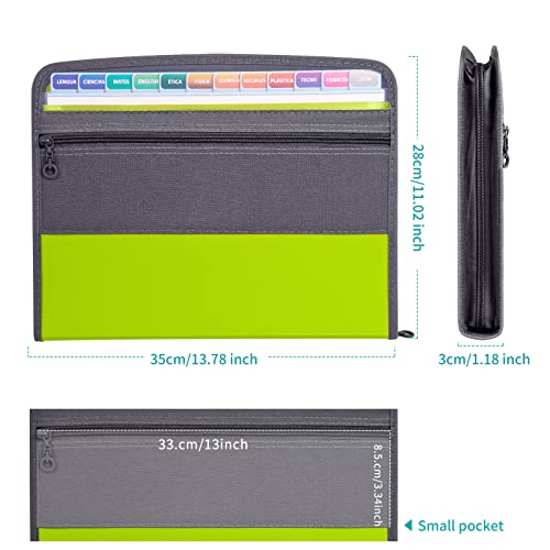 Cartellina portadocumenti, formato A4, con chiusura lampo, 13 scomparti, raccoglitore espandibile, portadocumenti (Vert Jauntre)