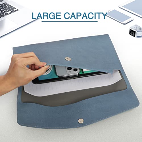 FYY Cartellina portadocumenti A4, in pelle, formato A4, con bottone automatico, formato A4, per ufficio scolastico, compiti a casa, ricevute, certificati, buste per documenti, blu