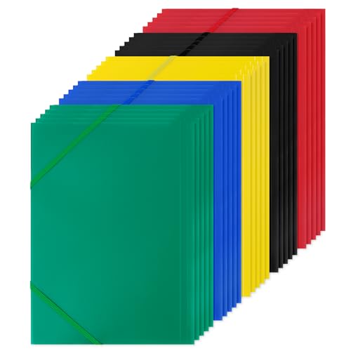 15 cartelline portadocumenti, Cartelle Lembi con Elastici Angolari, Cartella Elastica di Plastica per DIN A4, con 2 scomparti in gomma, ideale per documenti, riunioni, rapporti, forniture per ufficio