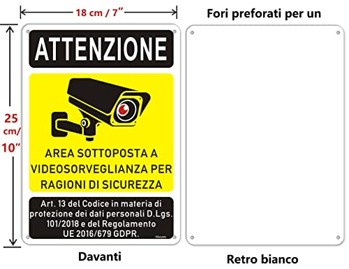 Cartello Area Videosorvegliata Alluminio Telecamera videosorveglianza Segno di Sicurezza per Casa negozio e proprietà privata 25x18cm Segnalo Videosorveglianza Cartelli Segnale di Pericolo 2pz