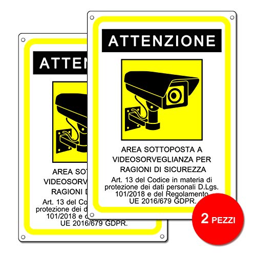 Cartello area videosorvegliata |Cartelli videosorveglianza per locali e proprietà privata |GDPR 2020 | plastica (20x15 cm) (2 Cartelli Area Videosorvegliata)...