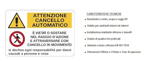 Cartello "Attenzione cancello automatico” in alluminio made in Italy