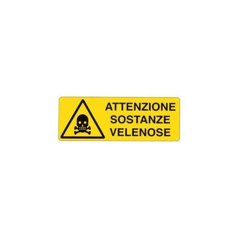 CARTELLO ATTENZIONE SOSTANZE VELENOSE in plastica - cm.31 x 14