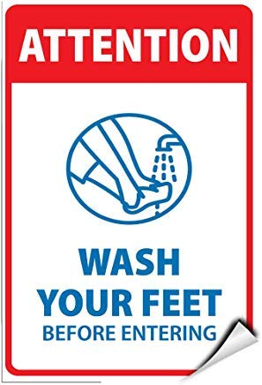 Cartello autoadesivo in vinile con scritta in inglese"Attention Wash Your Feet Before Entering", 20 x 30 cm