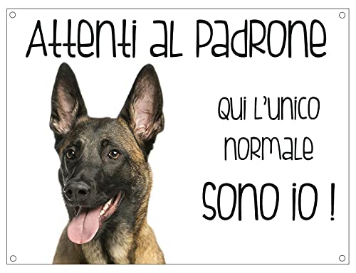 CARTELLO CANE - MALINOIS Attenti al padrone qui l'unico normale sono io - Con Adesivo in Vinile e Pannello in Forex (Adesivo)