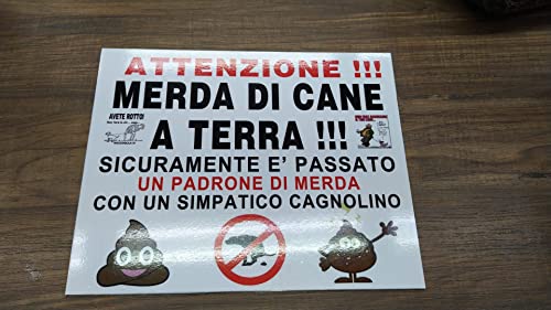 Cartello divertente targa merda di cane 30X24 CM pvc forex spesso 3mm da appendere o incollare PER MALEDUCATI CANE CACCA MARCIAPIEDI + 1 portachiavi corni